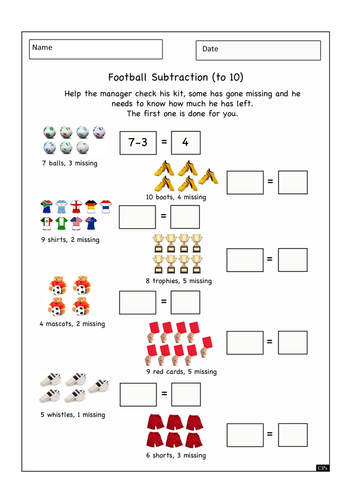 Football Worksheets - Activity Village Football Worksheets Scroll down for some simple football addition and subtraction worksheets to make practicing simple maths skills fun for soccer fans. We've also got "famous footballer" worksheets and a selection of early years worksheets with a football theme too. You might also like to look at our Football Vocabulary printables.